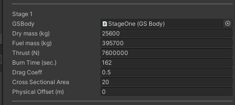 Physical Offset (m): Distance (m) of this stage from the top stage. This is used when a stage positions are calculated as the booster ascends with stages attached.